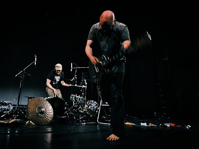 The final duo by Jazkamer (Lasse Marhaug and John Hegre) produced a set lacking in any focus or direction, an aimless, energy fuelled heap of wildly twisted dials and runaway power electronics. It was loud enough to clear half of the exhausted room to the lobby, but the volume was not the problem. I have no idea how much control Marhaug and Hegre had over the resulting music – they barely looked at their equipment as they wrenched it about – but it suffered from a complete lack of depth and substance, consisting of little more than a scrambled screeching mess of sound. As it came to an end my escape from the hall was rapid.